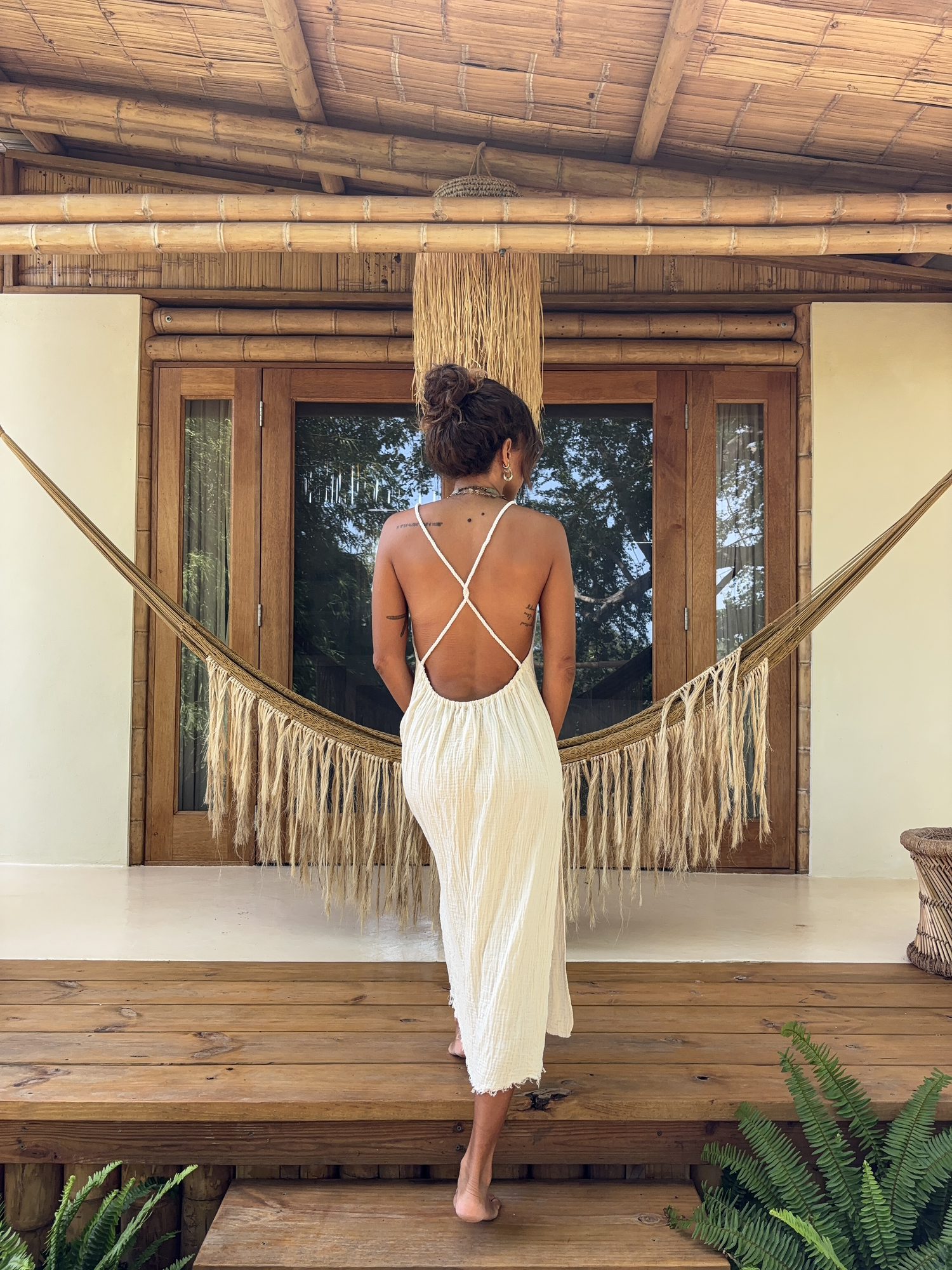 Effortlessly elegant and endlessly versatile, this timeless dress is a must-have in any wardrobe. Crafted from 100% organic cotton double gauze, it offers an ultra-soft, breathable feel with a naturally textured finish. The lightweight fabric drapes beautifully, making it perfect for warm days or easy layering year-round. Whether you're dressing it up or keeping it casual, this piece brings comfort, sustainability, and understated style together in one essential silhouette.